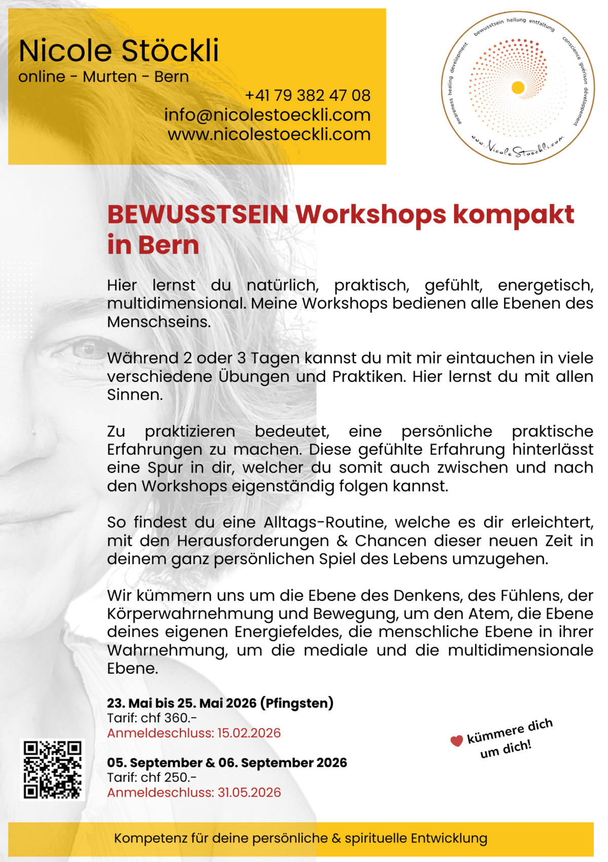 Bist du bereit für diese kompakte Erfahrung, welche dich unmittelbar bereichern wird und dir Nahrung für deinen weiteren Weg bietet? Dann reserviere noch Heute verbindlich deinen Platz!