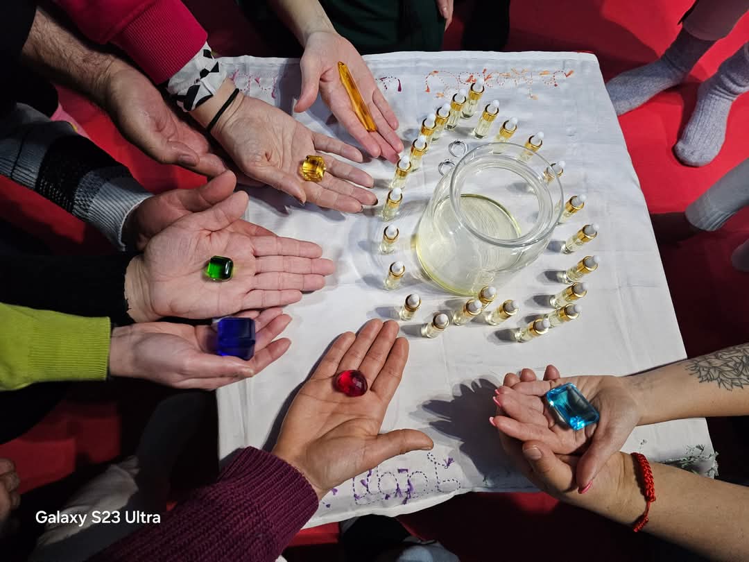 Das Medium nimmt einzelne Zettel aus der Schüssel und beantwortet die darauf geschriebene Frage. Nach der Antwort wird die Frage laut vorgelesen.