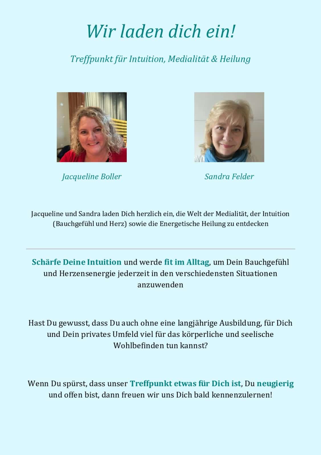 - Fortlaufender „Zirkel-Treffpunkt“ mit Schwerpunkt Themen der Intuition, Medialität & Energetischen Heilung